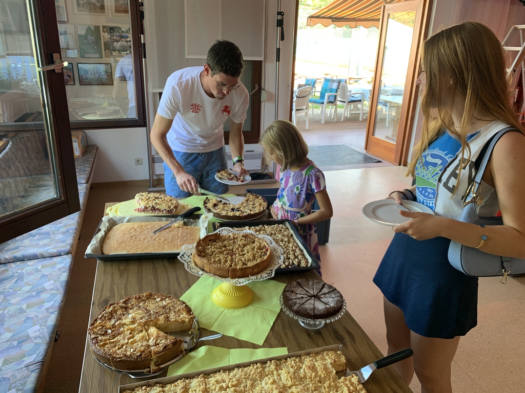 Der Übergang vom reichhaltigen Kuchen-Büffet & Kaffee zu frischgezapftem Bier und Grillabend war fließend. Bis zu 80 Gäste tummelten sich auf unserer Anlage, deckten sich am Grill- und Salatbüffet ein und genossen die Abendstimmung bei Gesprächen auf der Terrasse.