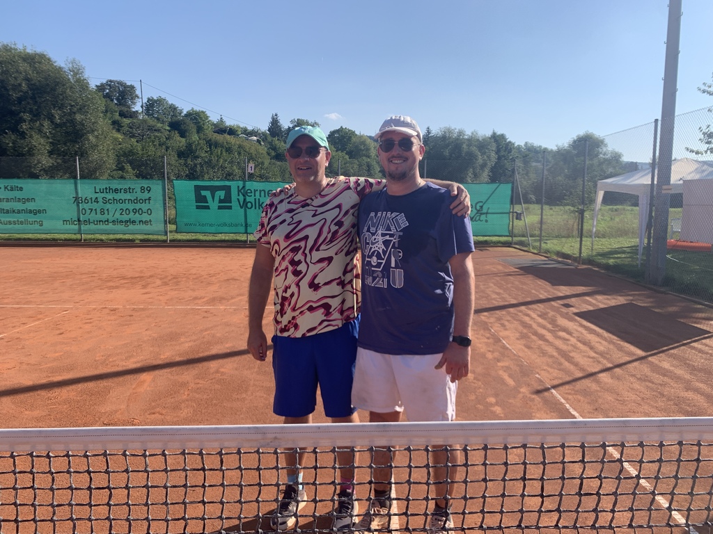 Später trafen Johannes Stock und Philmon Kollas in einer Neuauflage des 2022er-Finals aufeinander. Beide rackerten sich in einem tollen Spiel ab, bis die Shirts sandrot und die Knie aufgeschürft waren. In einer wendungsreichen Partie verteidigte am Ende Johannes Stock mit 7:5 und 6:4 seinen Titel als Vereinsmeister. Für diese Leistungen gab es bei der anschließenden Siegerehrung die verdienten Pokale überreicht von Jörg Klein (1. Vorsitzender) und Heide Marte-Lowe (2. Vorsitzende). Auch die Gewinner des Schleifchen- Turniers, Alex Baur und Bärbel Roller, wurden geehrt.